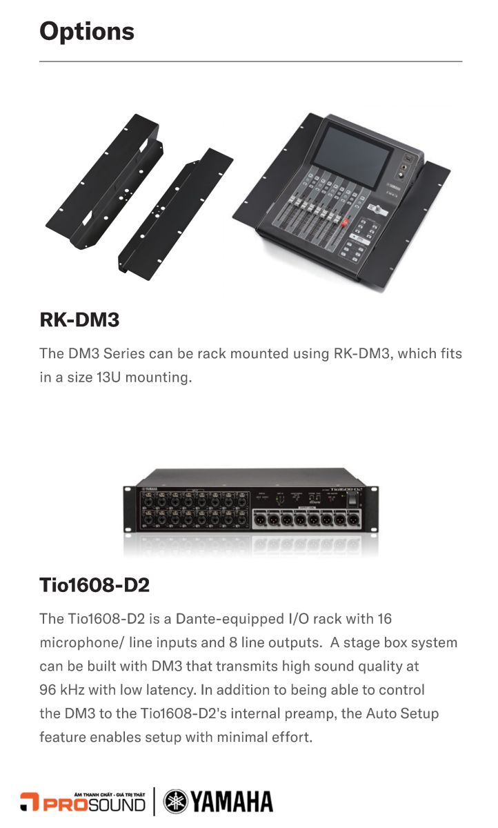 Trong khi các bàn trộn khác có thể cung cấp các tính năng tương tự, không có bàn trộn nào kết hợp chúng với mức độ đổi mới, tính linh hoạt và thiết kế tập trung vào người dùng như Yamaha DM3. Đây không chỉ là một thiết bị—nó là cánh cổng mở ra một cấp độ sáng tạo âm thanh mới. Cho dù bạn là một kỹ sư âm thanh có kinh nghiệm hay chỉ mới bắt đầu, DM3 sẽ giúp bạn đạt được âm thanh tốt nhất, mỗi lần sử dụng.