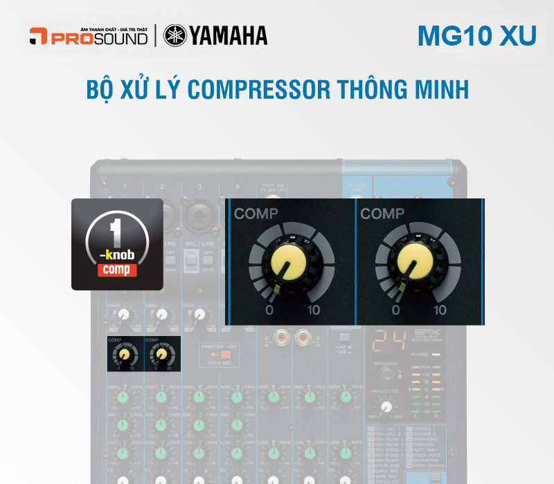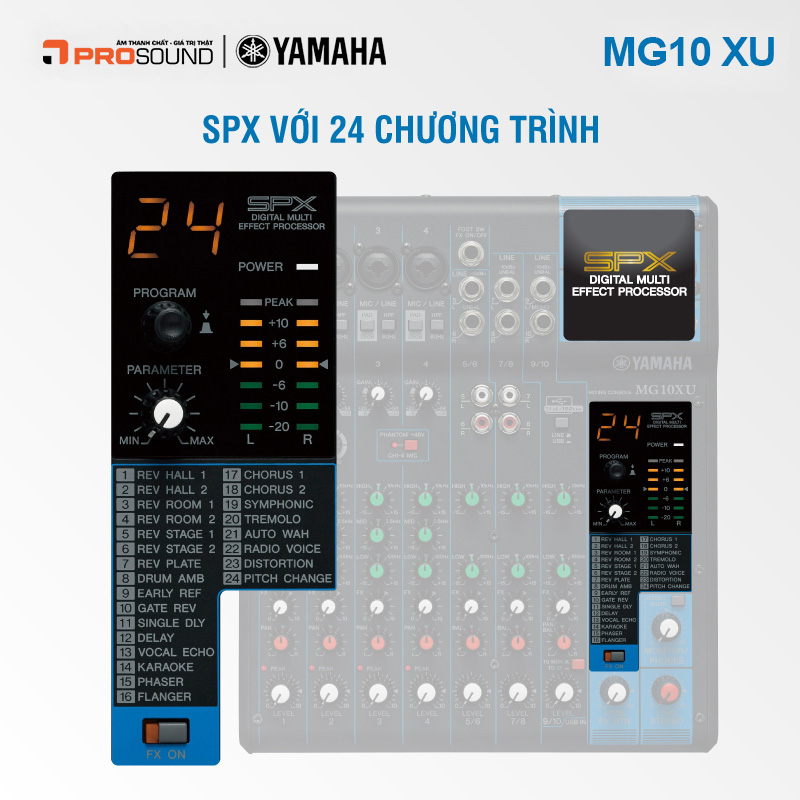 MG Series không chỉ nổi bật với khả năng trộn âm cơ bản mà còn được trang bị các tính năng hiện đại để hỗ trợ người dùng trong quá trình sáng tạo âm thanh. Các bộ EQ 3 băng tần cho phép điều chỉnh chi tiết các dải tần số, trong khi đó các hiệu ứng SPX nổi tiếng của Yamaha mang đến 24 tùy chọn hiệu ứng khác nhau, từ reverb, delay đến chorus, giúp tạo ra các không gian âm thanh phong phú và đa dạng.