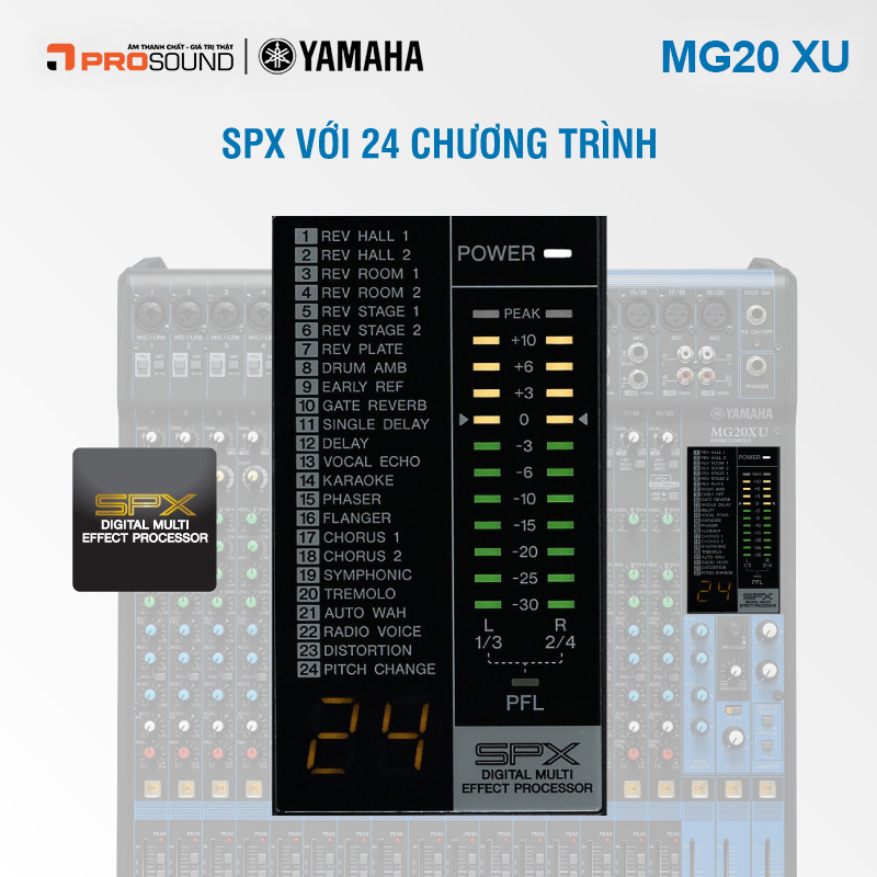 MG Series không chỉ nổi bật với khả năng trộn âm cơ bản mà còn được trang bị các tính năng hiện đại để hỗ trợ người dùng trong quá trình sáng tạo âm thanh. Các bộ EQ 3 băng tần cho phép điều chỉnh chi tiết các dải tần số, trong khi đó các hiệu ứng SPX nổi tiếng của Yamaha mang đến 24 tùy chọn hiệu ứng khác nhau, từ reverb, delay đến chorus, giúp tạo ra các không gian âm thanh phong phú và đa dạng.