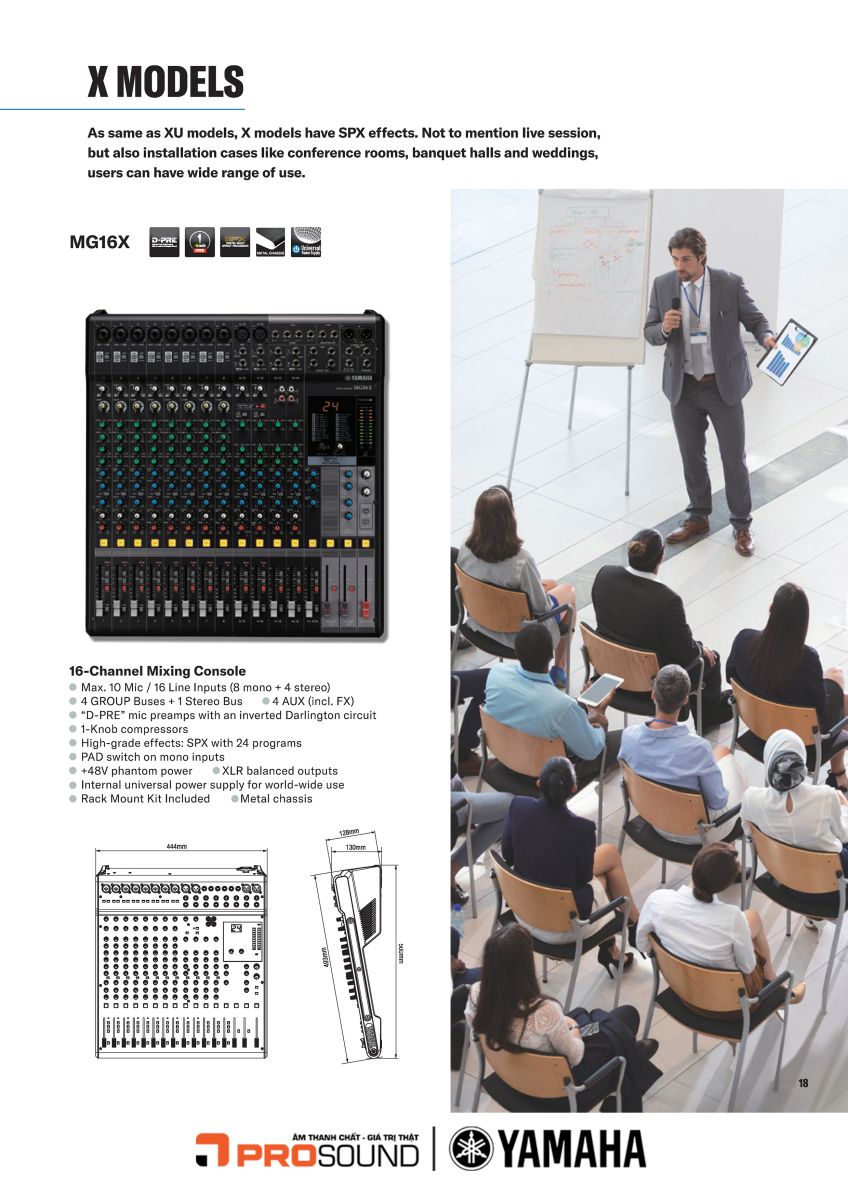 Yamaha MG Series không chỉ là một chiếc mixer thông thường mà còn là một biểu tượng của sự kết hợp giữa công nghệ âm thanh đỉnh cao và nghệ thuật thiết kế. Dù bạn là một kỹ sư âm thanh chuyên nghiệp hay một người đam mê âm nhạc, MG Series chắc chắn sẽ là công cụ hỗ trợ đắc lực trong việc tạo ra những sản phẩm âm thanh chất lượng cao, giúp bạn hiện thực hóa mọi ý tưởng sáng tạo một cách hoàn hảo nhất.
