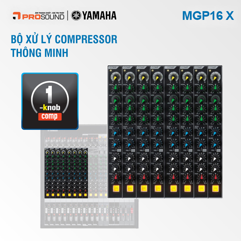 Các mixer MGP của Yamaha cung cấp nhiều tùy chọn đầu vào và đầu ra để phù hợp với nhiều cấu hình khác nhau. Các mixer có nhiều kênh mono và stereo, mỗi kênh đều có EQ riêng, điều khiển gửi phụ và nén. Dòng MGP cũng bao gồm các Bộ nén One-Knob độc đáo của Yamaha, cho phép người dùng nhanh chóng điều chỉnh mức độ nén hoàn hảo cho mỗi kênh.