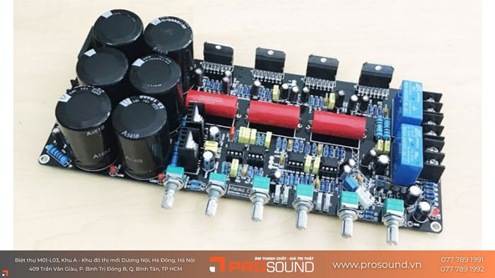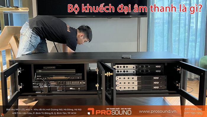 Bộ khuếch đại âm thanh hay còn gọi là amplifier. Bộ khuếch đại âm thanh là một phần không thể thiếu trong các bộ dàn âm thanh karaoke từ bình dân đến tầm trung hoặc cao cấp. Nó chính là thiết bị cung cấp khuếch đại âm thanh ra loa với công suất mạnh mẽ, uy lực nhất. Bộ khuếch đại âm thanh có thể chơi tốt, kéo theo từ 4 đến 5 cặp loa có công suất lớn mà ampli hoặc cục đẩy công suất thông thường không làm được.
