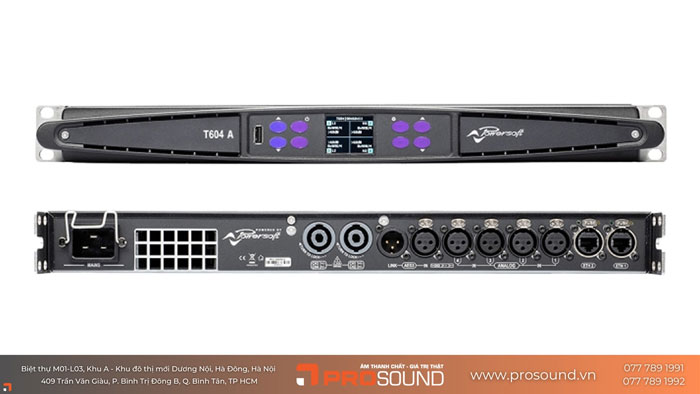 Powersoft T604A là bộ khuếch đại 4 kênh, cung cấp công suất mạnh mẽ cho các ứng dụng âm thanh khác nhau. Công suất cụ thể: 4 x 1500W @ 8 Ohm, 4 x 3000W @ 4 Ohm, 4 x 3000W @ 2 Ohm