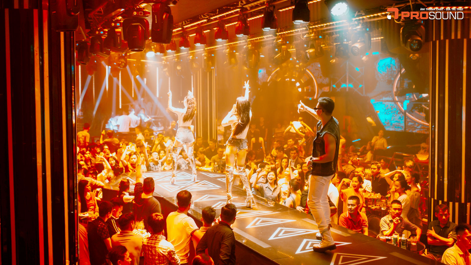 Không gian: Luôn có sàn nhảy (Dance floor) rộng lớn chiếm vị trí trung tâm. Ánh sáng laser và đèn sân khấu là yếu tố cốt lõi.
