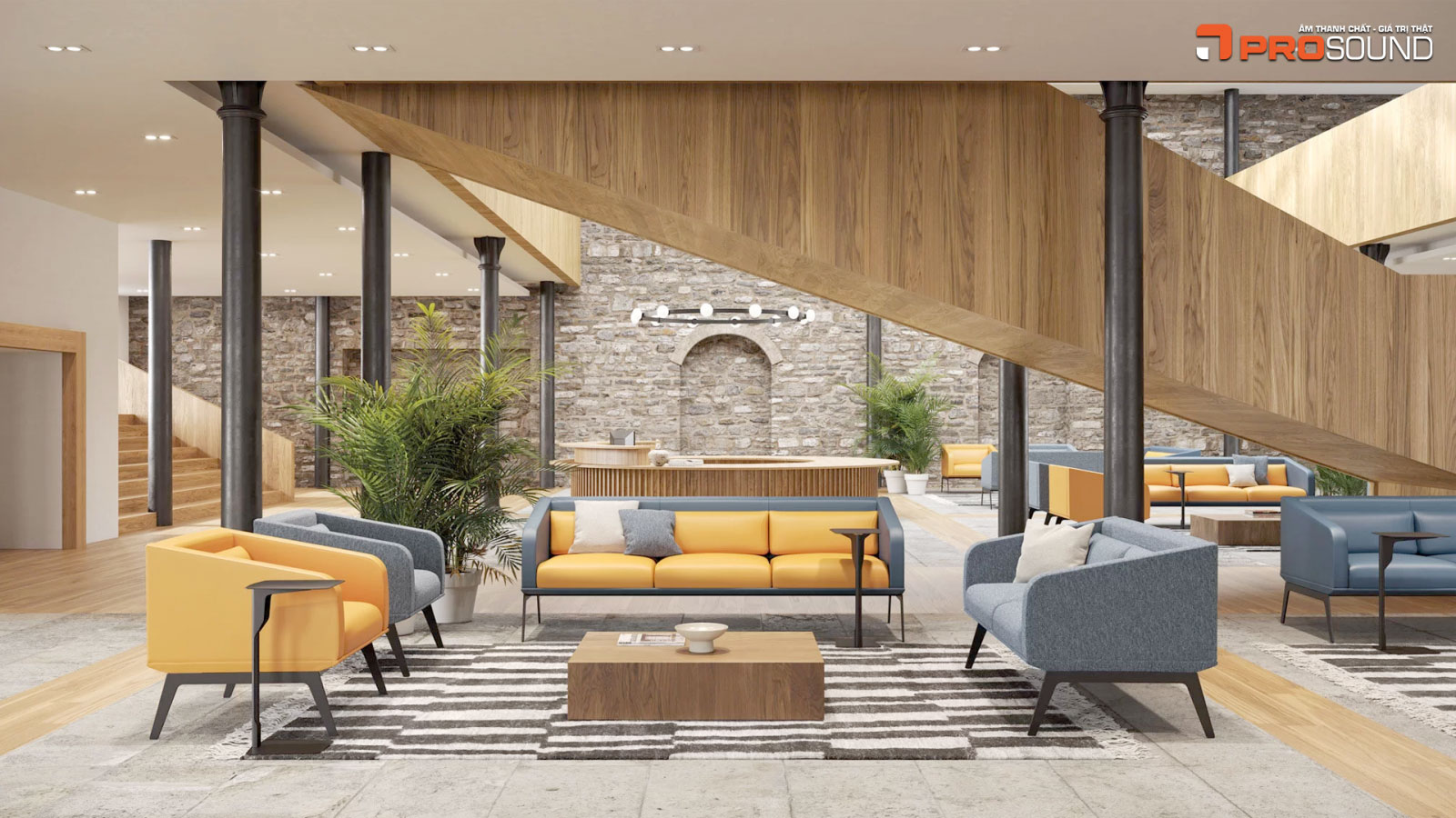 Với Lounge: Nên chọn các dòng loa treo tường nhỏ gọn nhưng có dải tần rộng để âm nhạc nghe sang trọng và êm ái.
