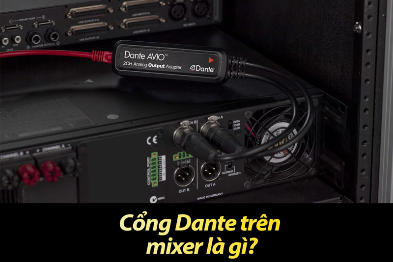 Dante (Digital Audio Network Through Ethernet) là một giao thức âm thanh kỹ thuật số được phát triển bởi Audinate. Nó sử dụng mạng Ethernet để truyền tải âm thanh với chất lượng cao, giúp kết nối nhiều thiết bị âm thanh như mixer, loa, amply, và các thiết bị audio khác. Cổng Dante trên mixer cho phép truyền tải tín hiệu âm thanh từ thiết bị này đến thiết bị khác mà không cần phải sử dụng dây tín hiệu truyền thống như cáp XLR hay RCA.