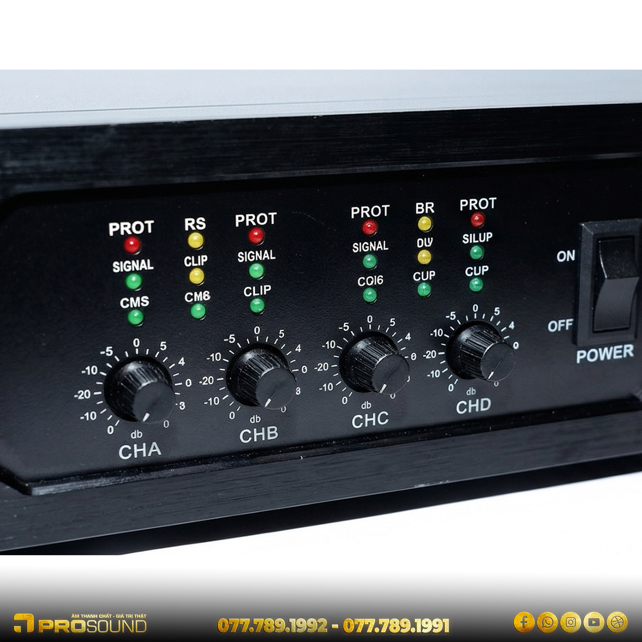 Ở mức trở kháng 8 Ohm, VTA VT-4060 cung cấp công suất 600W cho mỗi kênh. Khi xuống 4 Ohm, công suất đạt 900W/kênh, đủ để kéo hiệu quả các dòng loa full đơn hoặc loa monitor với độ ổn định cao. Nhờ cấu hình 4 kênh, người dùng có thể dễ dàng chia vùng âm thanh, đánh độc lập từng cặp loa hoặc phối ghép linh hoạt theo từng nhu cầu sử dụng thực tế.