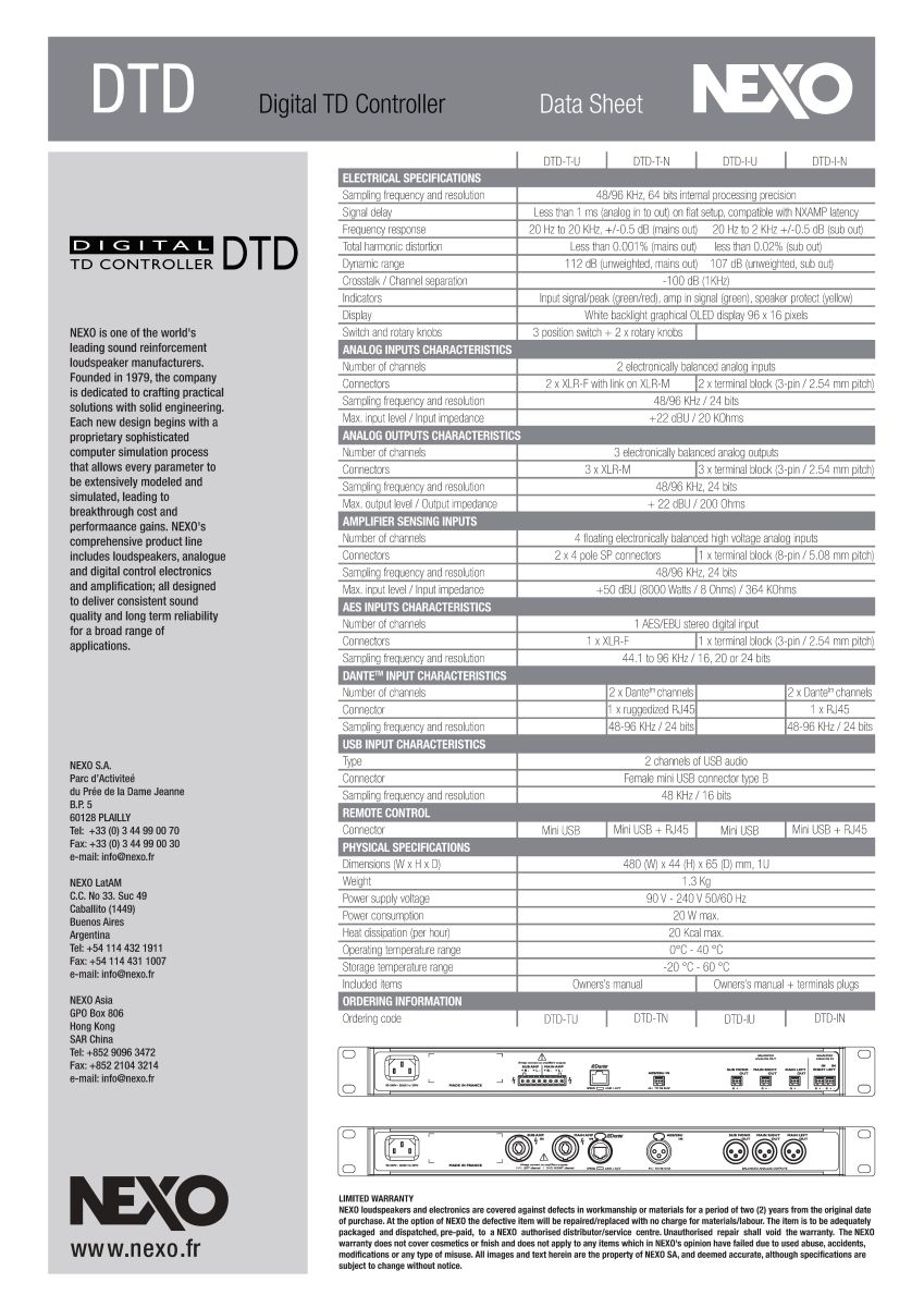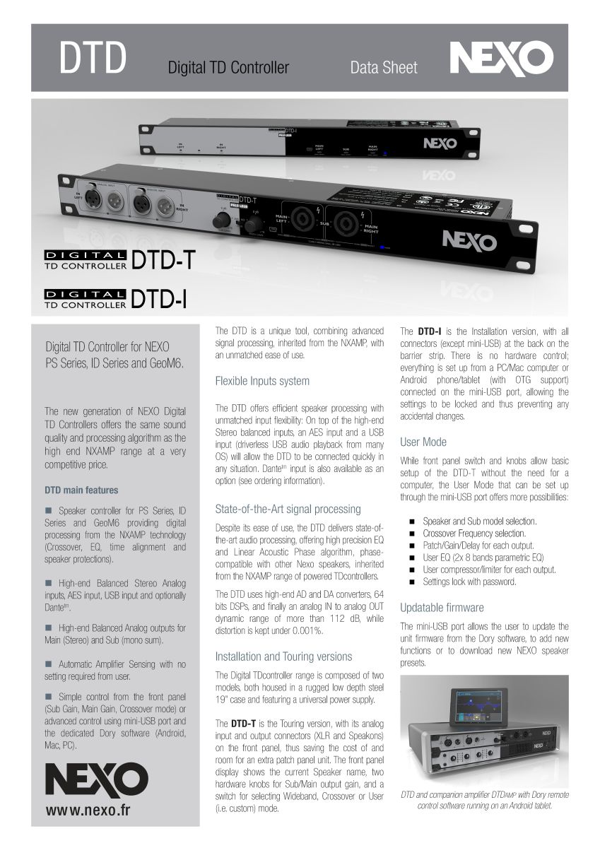 Thông số kỹ thuật NEXO DTD-T