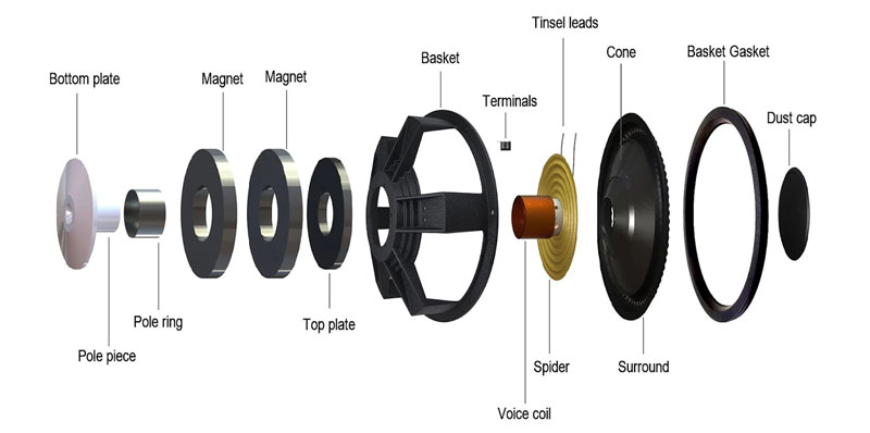 Cuộn dây âm (voice coil): Nhận dòng điện từ ampli để tạo ra từ trường làm rung màng loa.