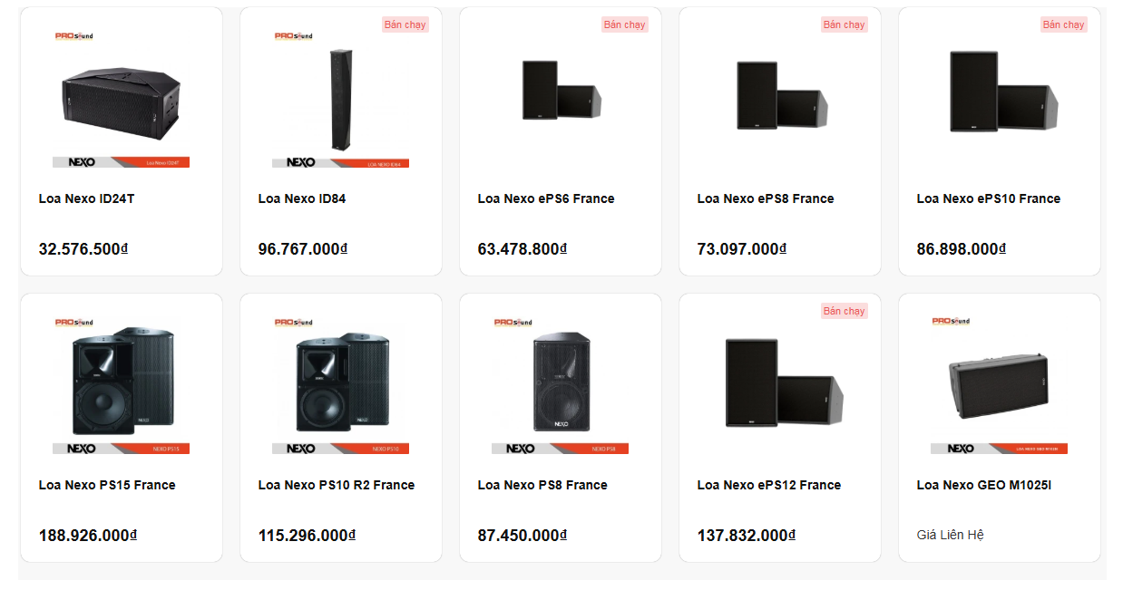 Nexo: Loa chuyên nghiệp cho sân khấu, hội trường và các sự kiện trực tiếp với các dòng sản phẩm nổi bật như GEO, ID, và PS series.