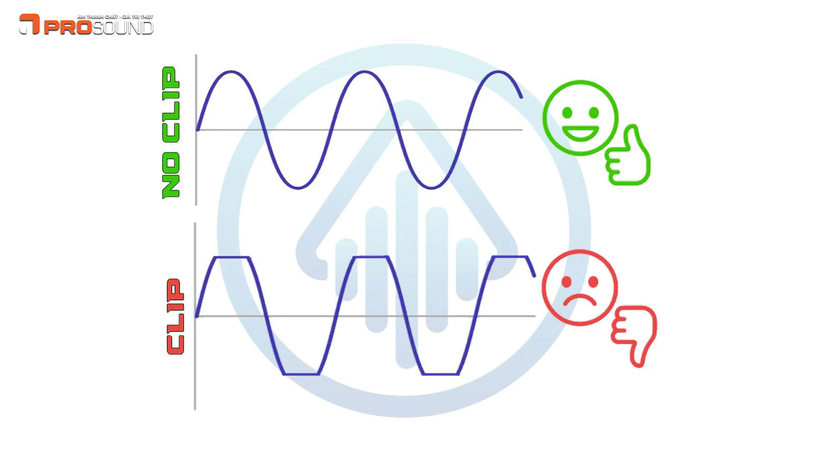 Đèn Clip (hay còn gọi là đèn báo quá tải) sáng lên khi tín hiệu âm thanh đầu vào vượt quá khả năng khuếch đại của cục đẩy. Lúc này, sóng âm thanh không còn giữ được hình dạng nguyên bản (hình sin) mà bị "cắt ngọn" (clipping), trở thành dạng sóng vuông.