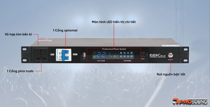 Ngoài ra, các dòng quản lý nguồn cao cấp tại Pro Sound còn được tích hợp thêm chức năng lọc nhiễu, ổn định điện áp và aptomat bảo vệ quá tải.