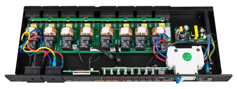 Bộ quản lý nguồn sinh ra để tự động hóa quy trình này. Quý khách chỉ cần bấm 1 nút, thiết bị sẽ tự động bật từ kênh 1 đến 8 và tắt từ kênh 8 về 1, đảm bảo an toàn tuyệt đối cho loa.