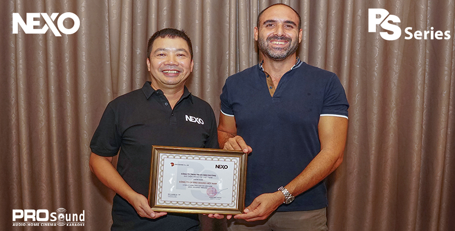 Ngày 28/06/2019 đại diện hãng NEXO Prance, ông MR. Joe White đã đích thân sang Việt Nam và trao chứng nhận phân phối các sản phẩm của NEXO cho Pro Sound.
