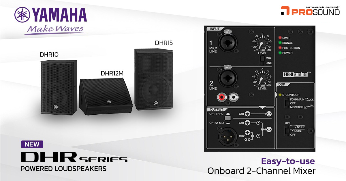 DHR10 là dòng loa active của Yamaha, cho phép bạn kết hợp với nhiều nguồn phát khác nhau. Được thiết kế với hiệu suất tối ưu từ phòng nghiên cứu giàu kinh nghiệm của Yamaha. Prosound Việt Nam nhận thấy, đây là dòng loa có âm thanh thiên trầm, đầy đủ 3 dải, treble tơi nhuyễn, Mid tiến nịnh tai, nếu bạn có nhu cầu sử dụng nó để hát Karaoke trong gia đình, hoặc sự kiện sân khấu hội trường nhỏ, không cần tới SUB, dòng loa DHR có thể khiến bạn bất ngờ với chất âm mà nó tạo ra.