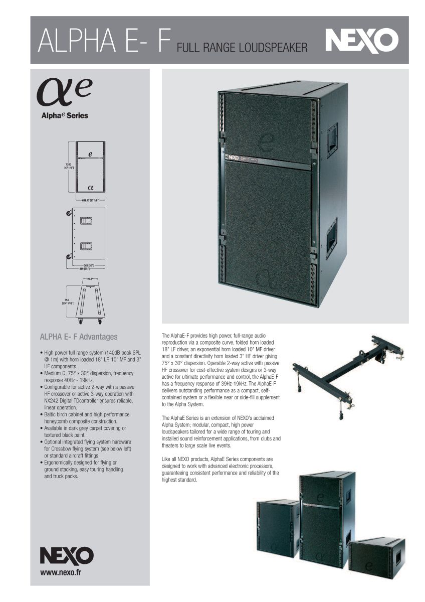 Trong các hệ thống âm thanh biểu diễn chuyên nghiệp, yêu cầu về một mẫu loa full range mạnh mẽ, kiểm soát tốt và linh hoạt cấu hình là rất quan trọng. NEXO đã phát triển dòng Alpha E-Series, trong đó NEXO Alpha E-F là model chủ lực dành cho touring và sân khấu lớn.