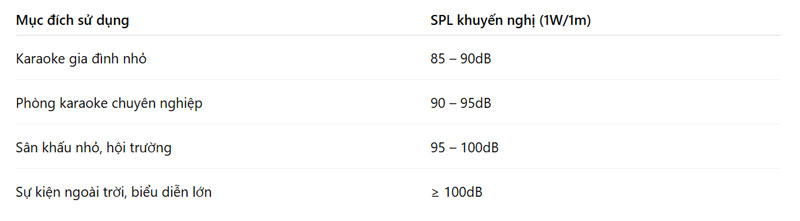 Lưu ý: Loa SPL cao hơn sẽ phát ra âm thanh lớn hơn ở cùng mức công suất, từ đó tiết kiệm năng lượng và ít cần đẩy công suất lớn.