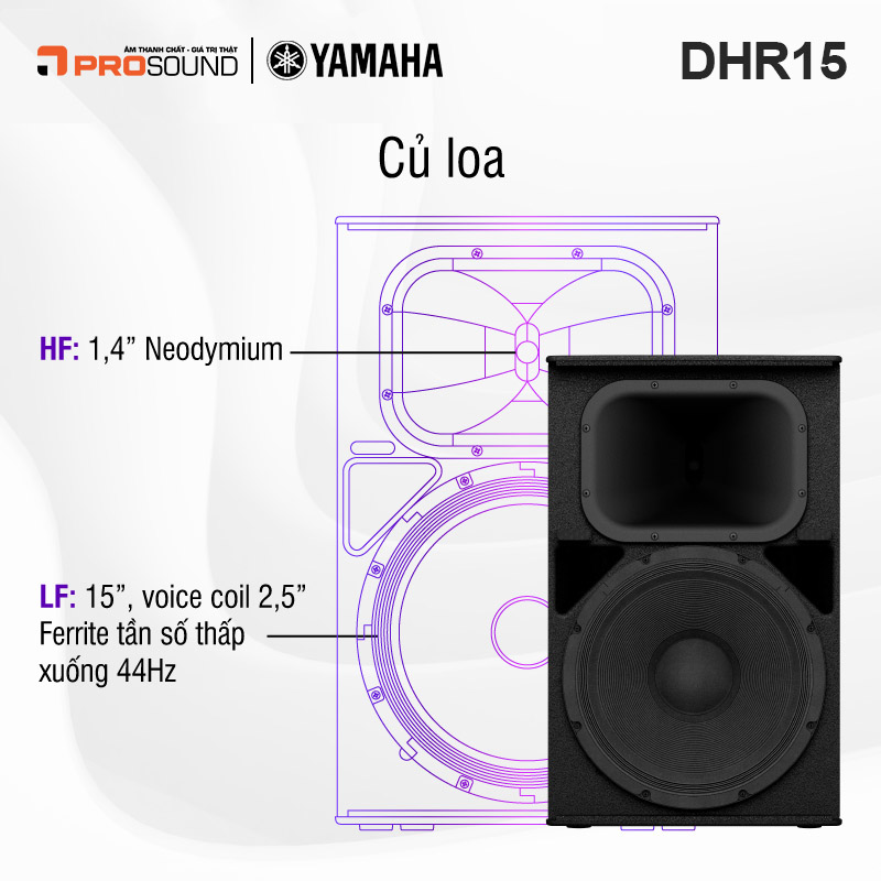 Củ bass 15 inch, treble 1,75 inch, cho dải âm rộng và mạnh mẽ