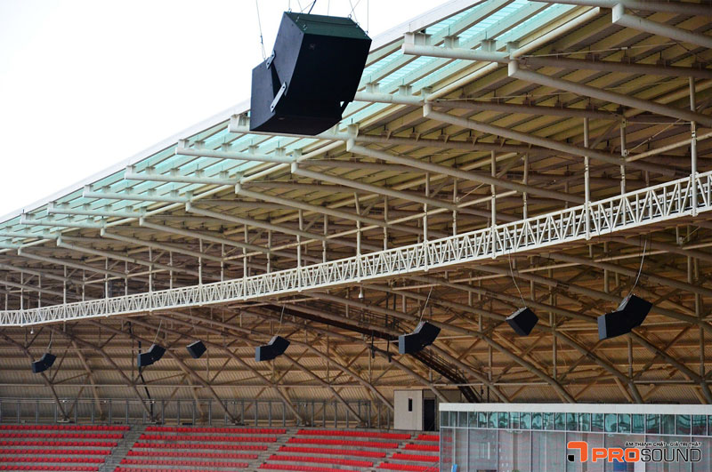 Sân vận động có không gian lớn, đòi hỏi hệ thống loa công suất lớn để đảm bảo âm thanh lan tỏa đồng đều.