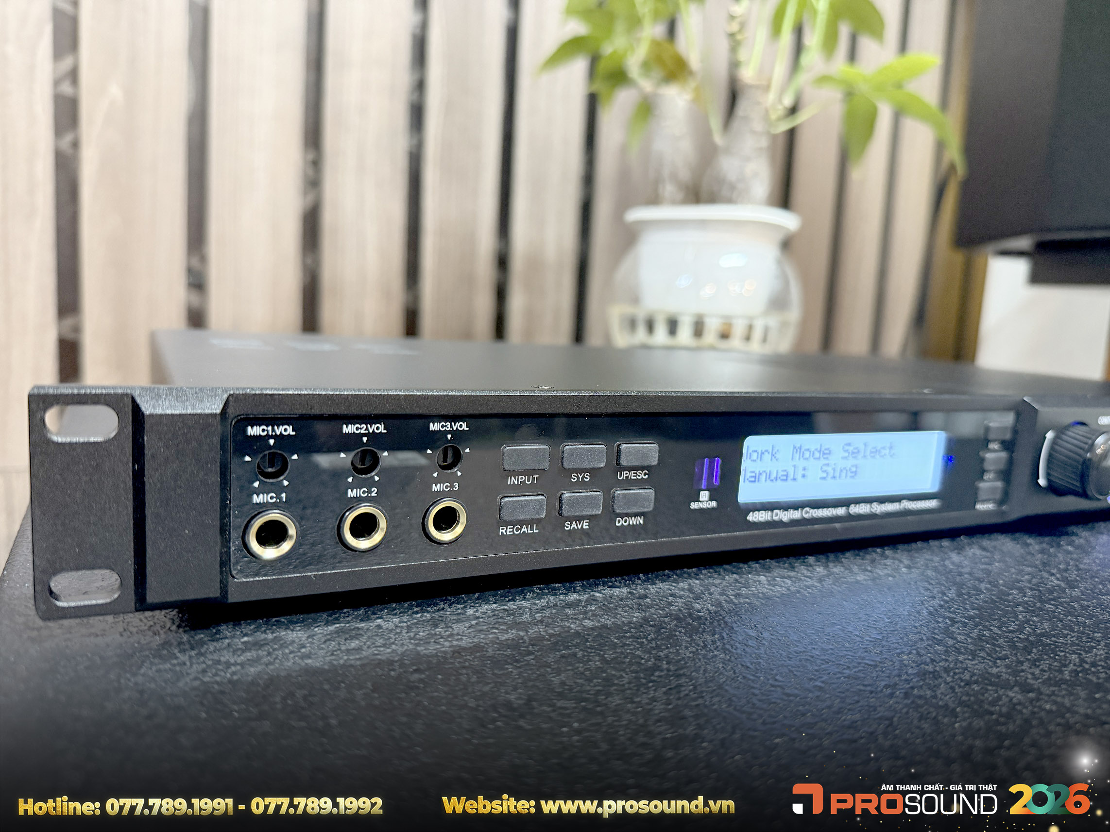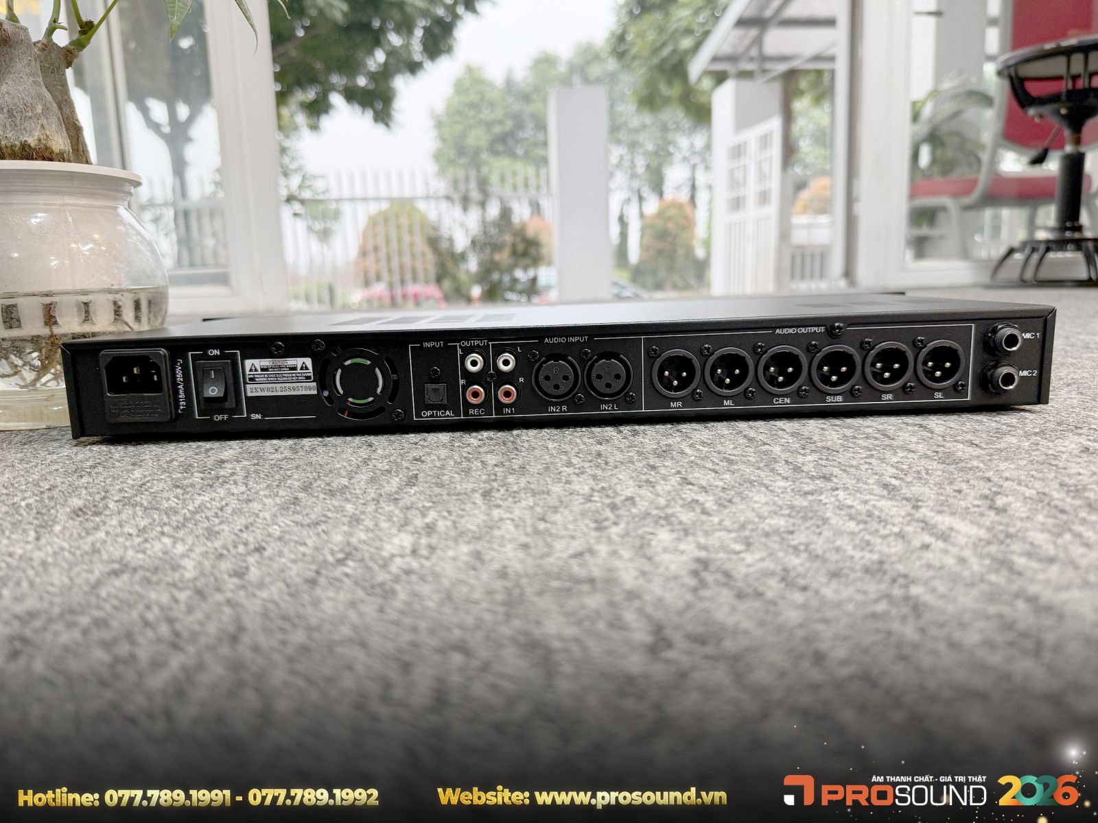 Chức năng FBE chống hú chuyên nghiệp hoạt động hiệu quả trong thực tế, giúp hạn chế tiếng hú rít khi mở âm lượng lớn hoặc trong phòng kín. Điều này đặc biệt quan trọng với các phòng karaoke kinh doanh hoặc dàn gia đình thường xuyên hát ở mức âm lượng cao.